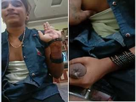 Bhabhi fondles her breasts and masturbates with her hands