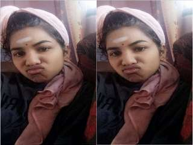 Tamil babe with big boobs enjoys solo playtime and kissing