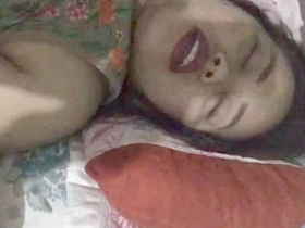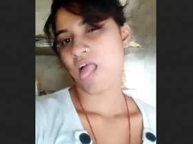 Indian girl pleasures herself with her tongue and fingers