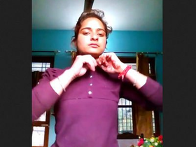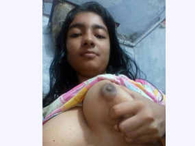 A timid Indian girl reveals her breasts