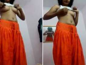 Bangla beauty flaunts her natural boobs and moist vagina in exclusive video