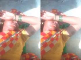 Watch Bhabha, a married woman with big breasts, bathing topless in video